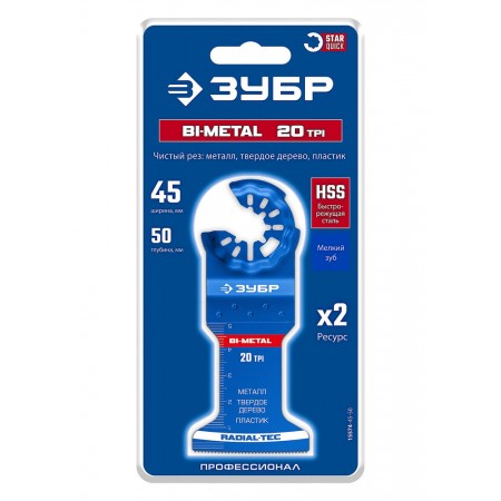 Полотно биметаллическое BIM 45 x 50 мм, 20TPI, чистый рез: металл, твердое дерево, пластик ЗУБР StarQuick 15574-45-50