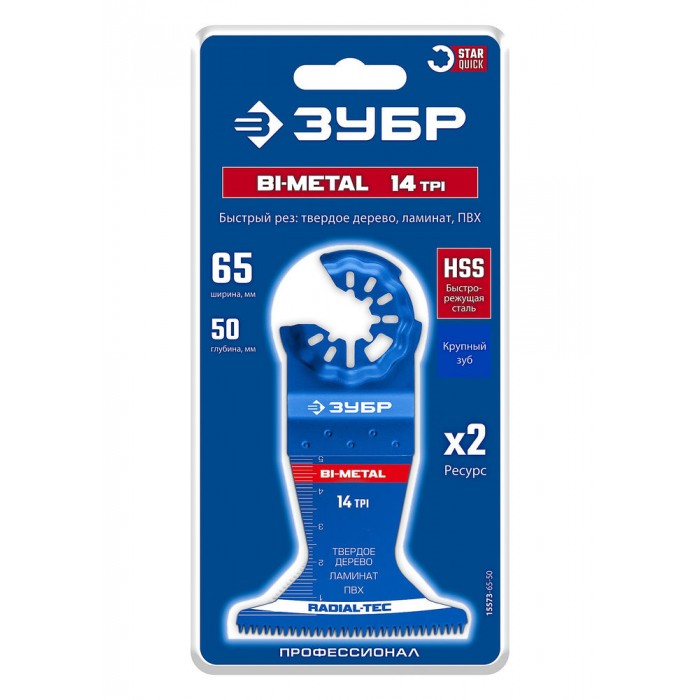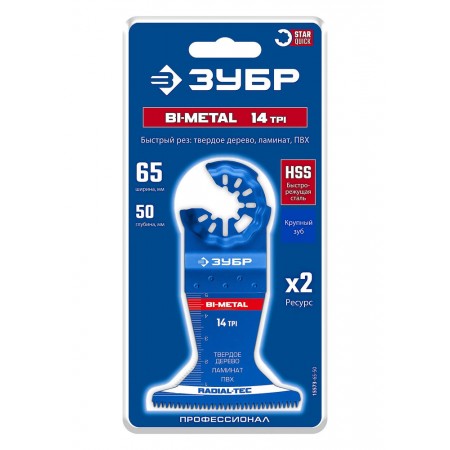 Полотно биметаллическое BIM 65 x 50 мм, 14TPI, быстрый рез: твердое дерево, ламинат, ПВХ ЗУБР StarQuick 15573-65-50
