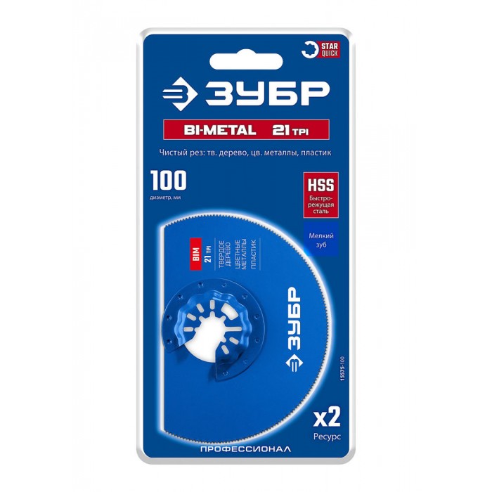 Полотно биметаллическое дисковое BIM d 100 мм, 21TPI, чистый рез: твердое дерево, цветные металлы, пластик ЗУБР StarQuick 15575-100