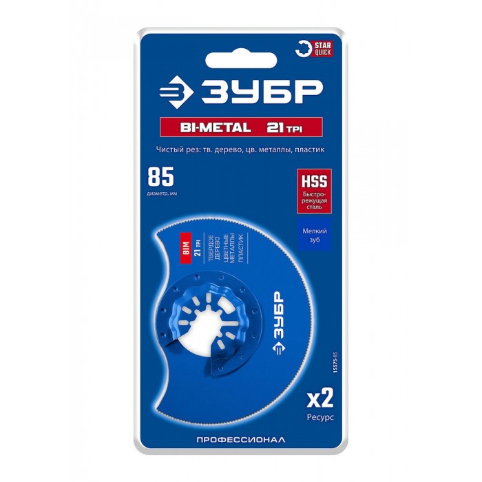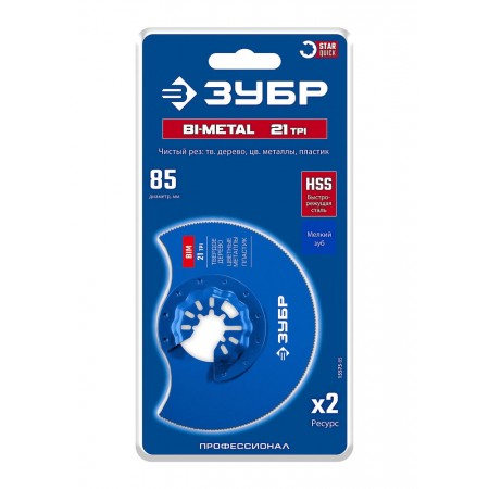 Полотно биметаллическое дисковое BIM d 85 мм, 21TPI, чистый рез: твердое дерево, цветные металлы, пластик ЗУБР StarQuick 15575-85