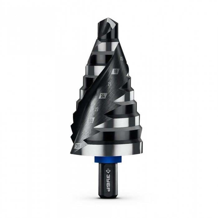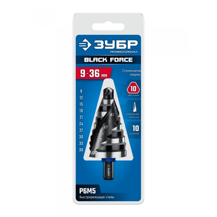 Сверло ступенчатое BLACK FORCE 9-36 мм, 10 ступеней, винтовая проточка ЗУБР Профессионал 29671-9-36-10