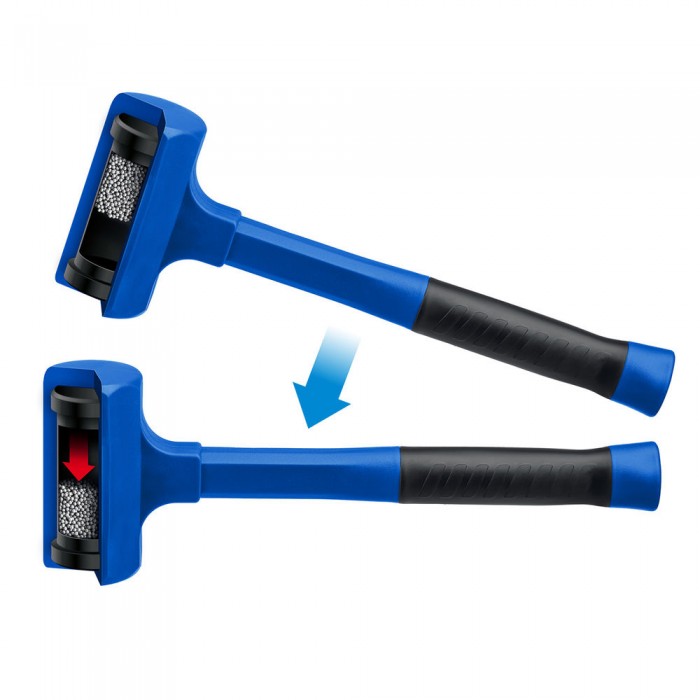 -Рабочая часть кувалды имеет пустотелую цельнолитую оболочку из ударопрочного пластика, облитого эластомером,