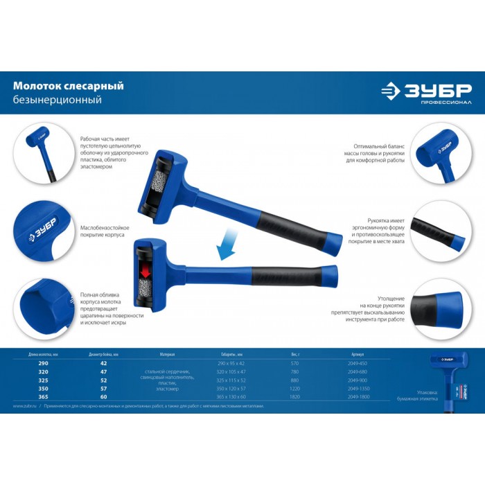 Молоток безынерционный 42 мм, 450 г ЗУБР БМО Профессионал 2049-450
