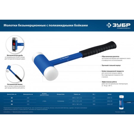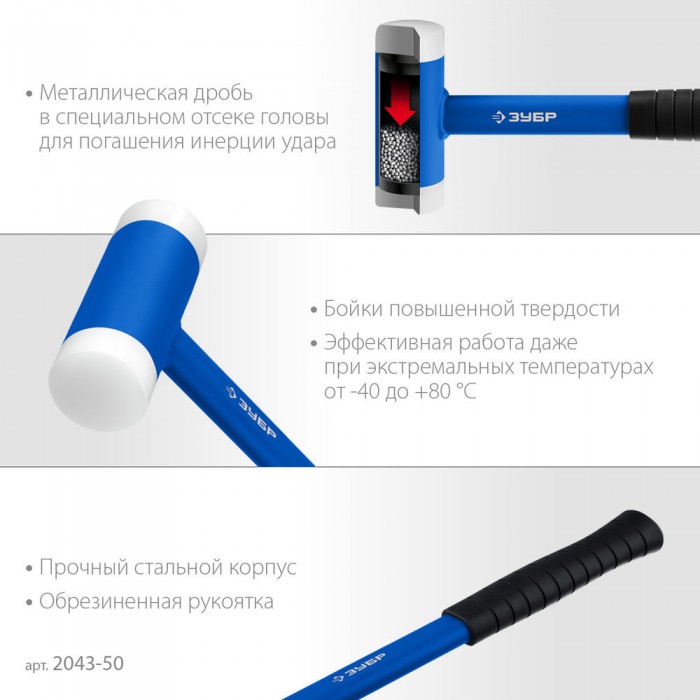 Молоток безынерционный с полиамидными бойками 50 мм ЗУБР БМП-50 Профессионал 2043-50