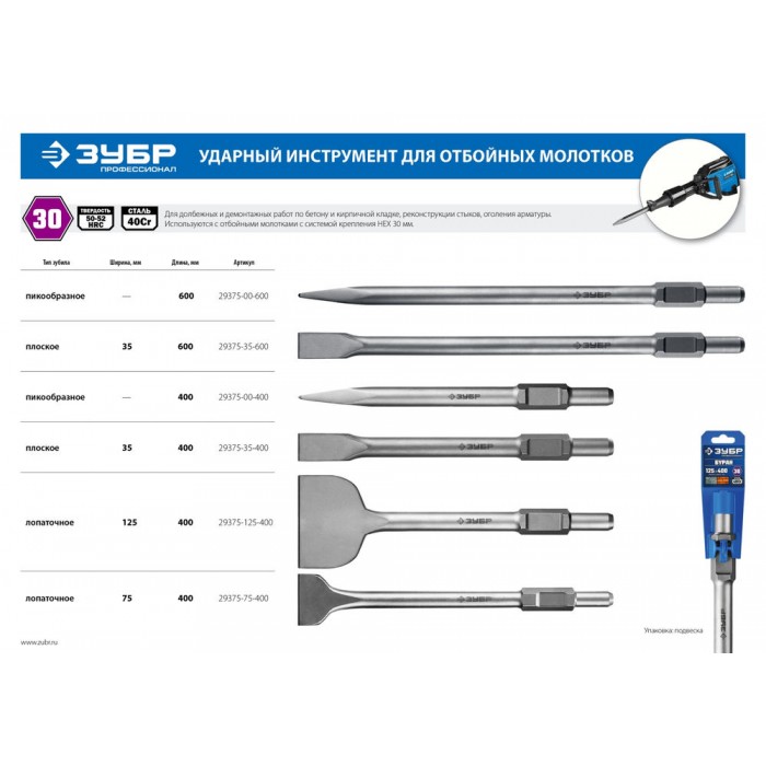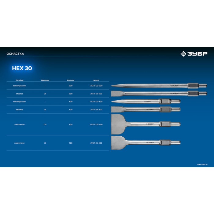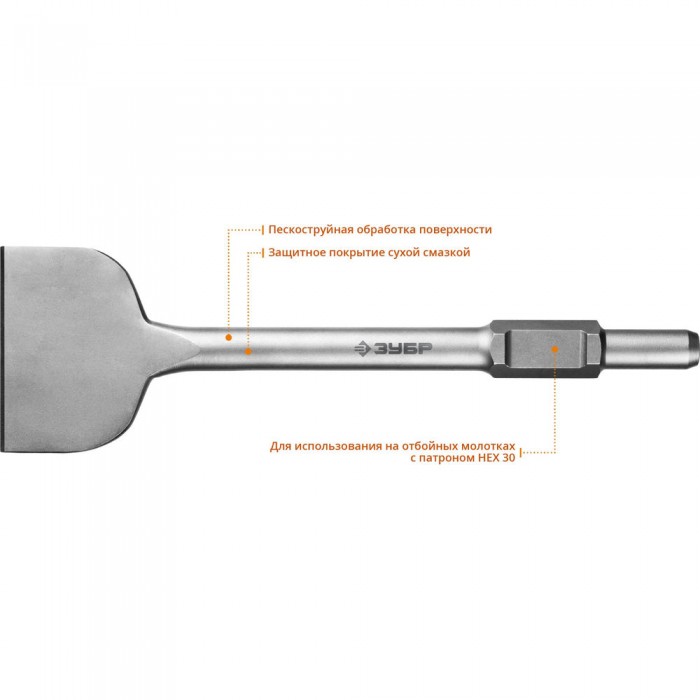 Зубило лопаточное 125 x 400 мм HEX 30 ЗУБР БУРАН 29375-125-400