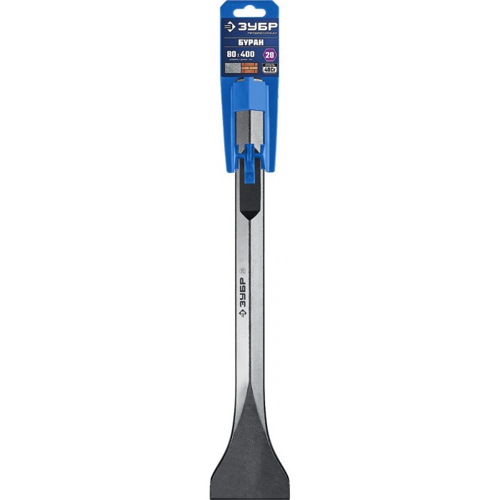 Зубило плоское изогнутое 80 x 400 мм HEX 28 ЗУБР БУРАН Профессионал 29372-80-400