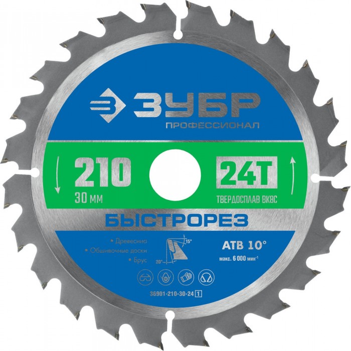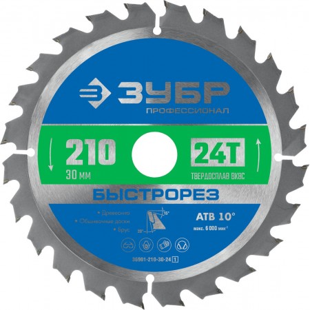 Диск пильный по дереву 210 x 30 мм, 24T ЗУБР Быстрорез Профессионал 36901-210-30-24_z01