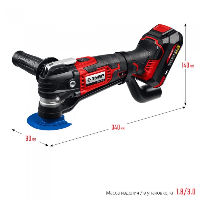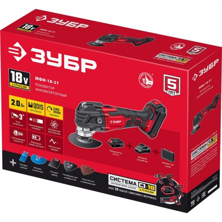 Реноватор аккумуляторный ЗУБР - универсальное устройство для разных строительных работ (резка, шлифование), особенно в труднодоступных местах и в отсутствие доступа к электричеству. Большой угол колебаний 3 градуса в сочетании с широким спектром регулировки частоты обеспечивают эффективную работу с любым материалом. Расширенная комплектация включает в себя базовый набор насадок для начала работы сразу после покупки и удобную сумку для хранения и переноски
