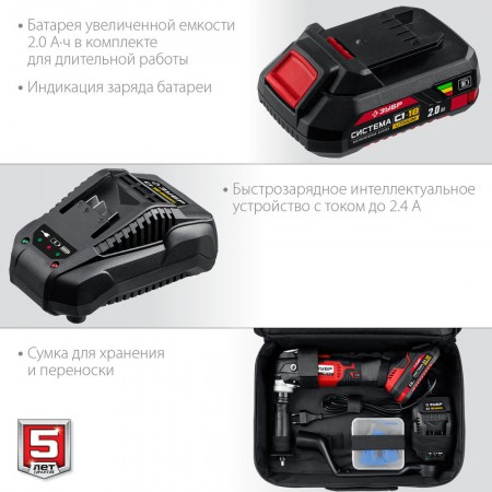 - Батарея емкостью 2.0 Ач в комплекте для длительной работы