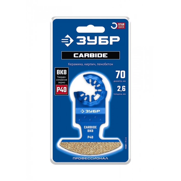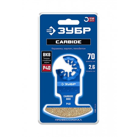 Полотно CARBIDE ВК8 Р40 70 x 2.6 мм с твердосплавной крошкой: керамика, кирпич, пенобетон ЗУБР StarQuick 15581-70-2.6