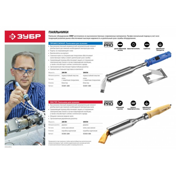Паяльное оборудование ЗУБР изготовлено из высококачественных современных материалов. Профессиональный подход и учет всех тенденций развития рынка обеспечивают высокую надежность и длительный срок службы.