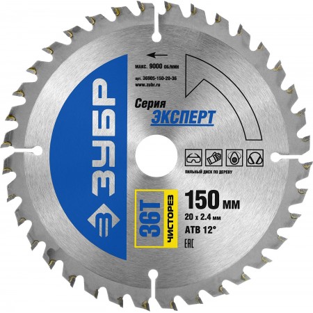 ЗУБР Чисторез, 150 x 20 мм, 36Т, пильный диск по дереву, Профессионал (36905-150-20-36)