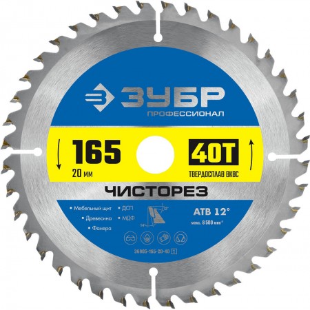 Диск пильный по дереву Чисторез 165 x 20 мм, 40Т ЗУБР Профессионал 36905-165-20-40_z01