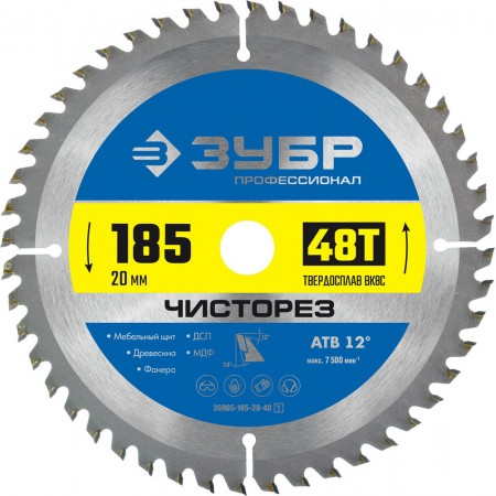 Диск пильный по дереву Чисторез 185 x 20 мм, 48Т ЗУБР Профессионал 36905-185-20-48_z01