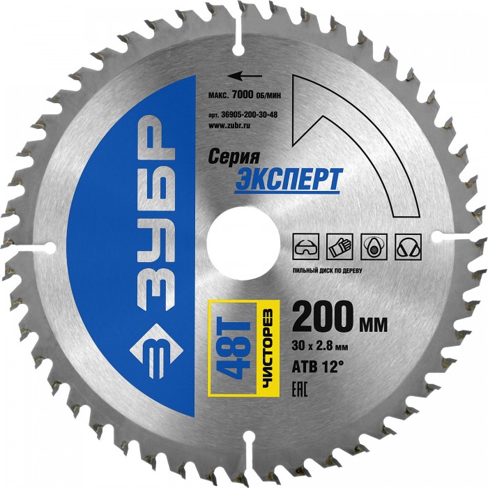 ЗУБР Чисторез, 200 x 30 мм, 48Т, пильный диск по дереву, Профессионал (36905-200-30-48)