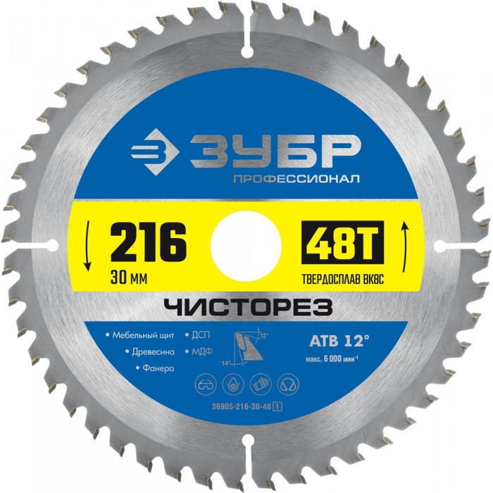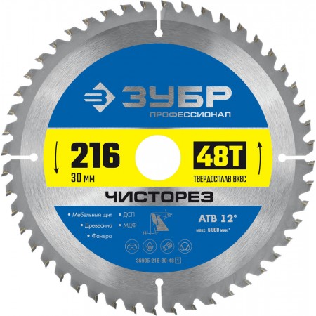 Диск пильный по дереву Чисторез 216 x 30 мм, 48Т ЗУБР Профессионал 36905-216-30-48_z01