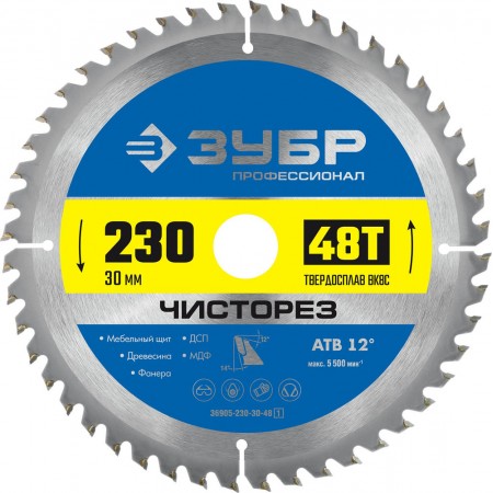 Диск пильный по дереву Чисторез 230 x 30 мм, 48Т ЗУБР Профессионал 36905-230-30-48_z01