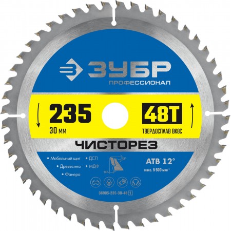 ЗУБР Чисторез, 235 x 30 мм, 48Т, пильный диск по дереву, Профессионал (36905-235-30-48_z01)