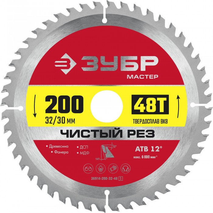 Диск пильный по дереву Чистый рез 200 x 32/30 мм, 48T ЗУБР 36914-200-32-48_z01