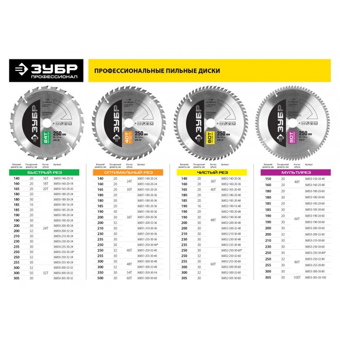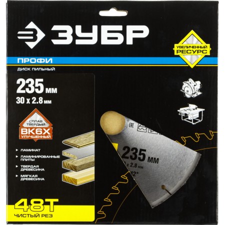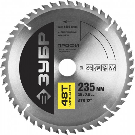 ЗУБР Чистый рез, 235 х 30 мм, 48Т, пильный диск по дереву, Профессионал (36852-235-30-48)