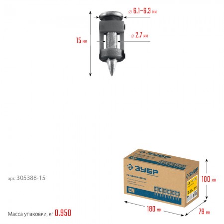 Гвозди по бетону CN 15 x 2.7 мм, оцинкованные, 1000 шт ЗУБР 305388-15