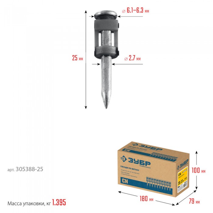 Гвозди по бетону соединены в кассету и забиваются при помощи газового или пневматического гвоздезабивного пистолета (нейлера). Необходимый размер гвоздя подбирается в зависимости от монтируемых материалов.