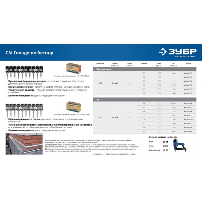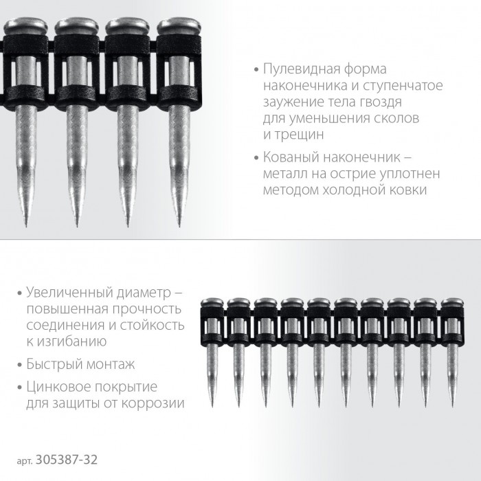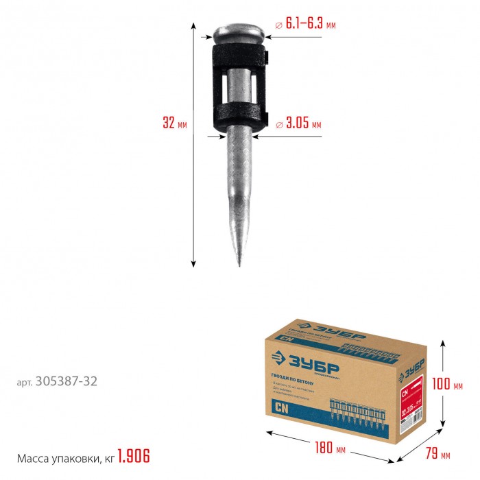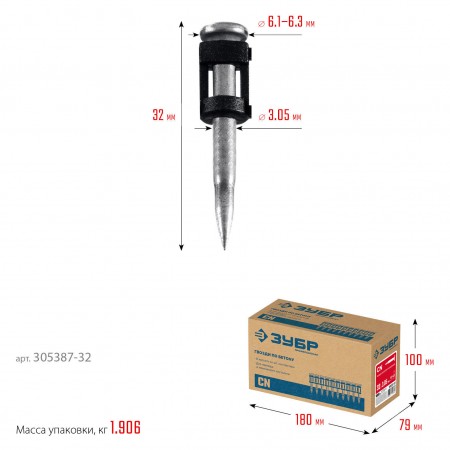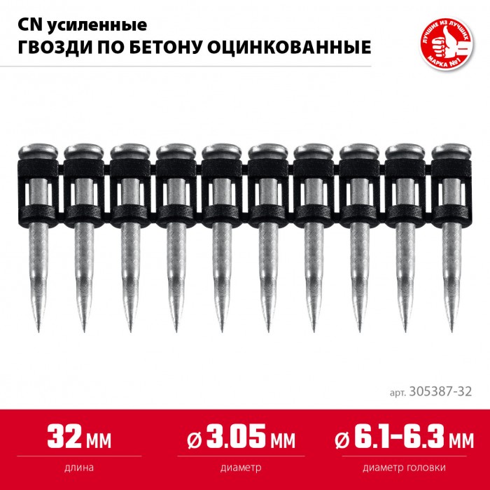 ЗУБР CN усиленные 32 х 3.05 мм, гвозди по бетону оцинкованные, 1000 шт (305387-32)