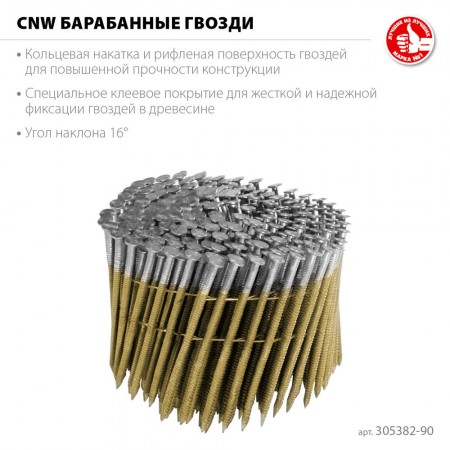 Гвозди барабанные CNW 90 x 3.1 мм, рифленые, 3600 шт ЗУБР 305382-90