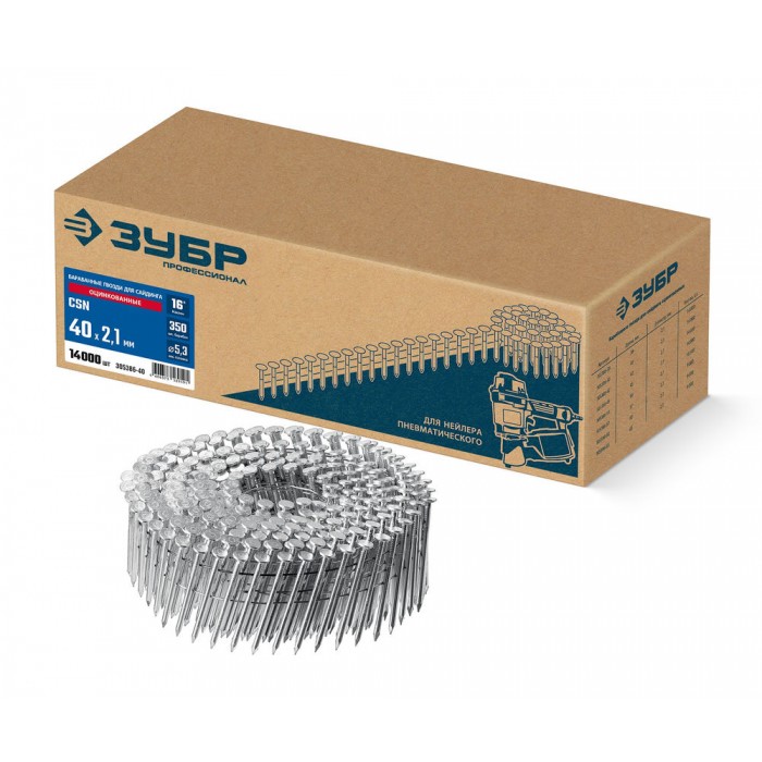 Гвозди для сайдинга барабанные CSN 40 x 2.1 мм, оцинкованные, 14000 шт ЗУБР 305386-40