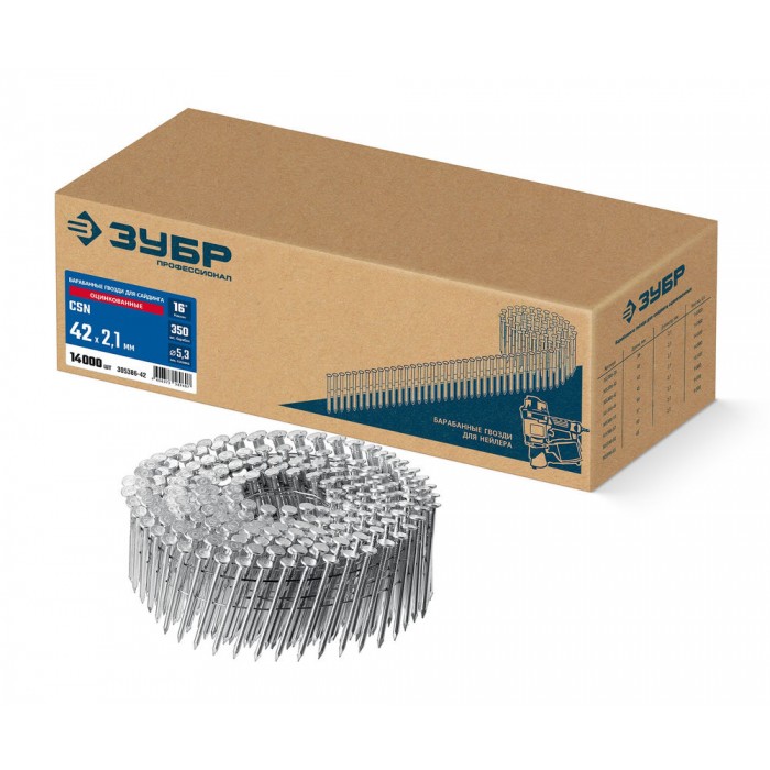 Гвозди для сайдинга барабанные CSN 42 x 2.1 мм, оцинкованные, 14000 шт ЗУБР 305386-42
