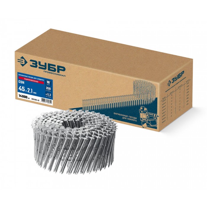 Гвозди для сайдинга барабанные CSN 45 x 2.1 мм, оцинкованные, 14000 шт ЗУБР 305386-45