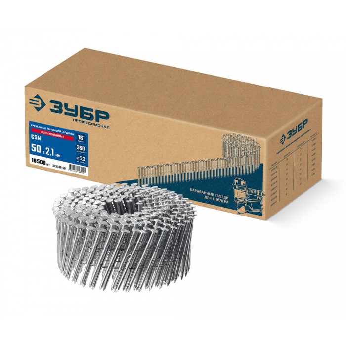 Гвозди для сайдинга барабанные CSN 50 x 2.1 мм, оцинкованные, 10500 шт ЗУБР 305386-50