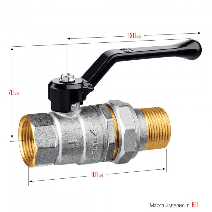 Шаровой кран полнопроходной d 1", ручка-рычаг, «мама-папа», с накидной гайкой ЗУБР 51320-1