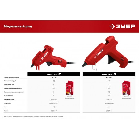 Пистолет термоклеевой электрический d 11 мм, выход клея 10 г/мин ЗУБР 06851-11