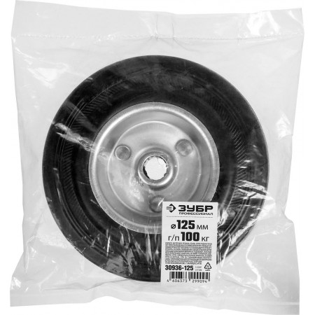 Колесо d 125 мм, г/п 100 кг, игольчатый подшипник, резина/металл ЗУБР Профессионал 30936-125
