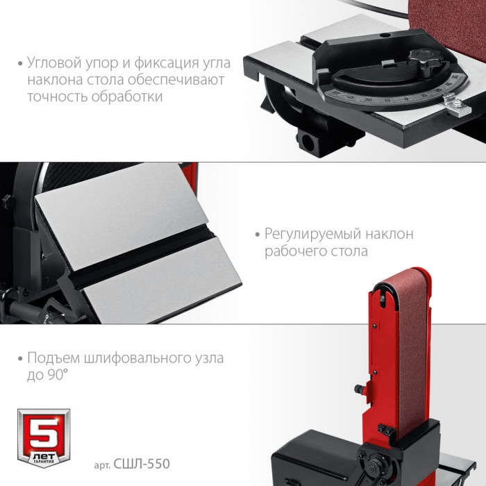 - Угловой упор и фиксация угла наклона стола обеспечивают точность обработки