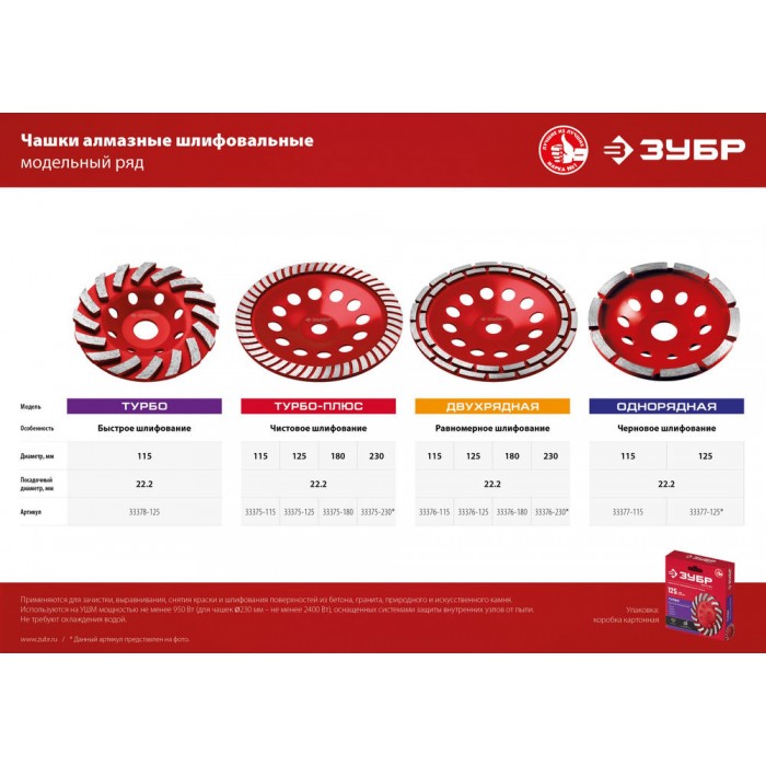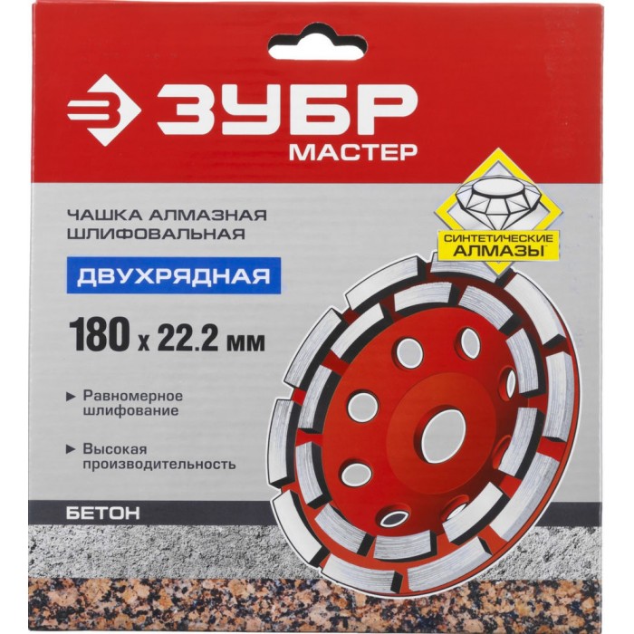 - Два ряда алмазных сегментов для равномерного шлифования и большого объема работ.
