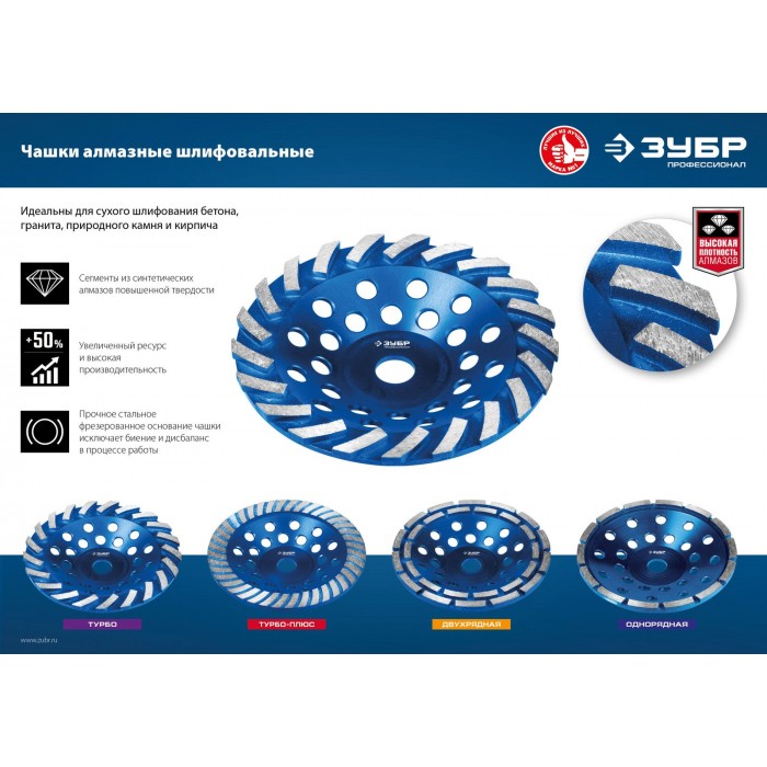 ЗУБР d 180 мм, двухрядная алмазная шлифовальная чашка, Профессионал (33372-180)