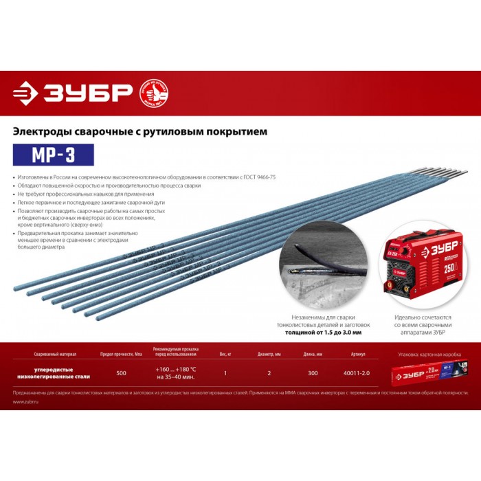 Для сварки ответственных конструкций из углеродистых низколегированных сталей на ММА сварочных инверторах переменным и постоянным током обратной полярности. Рекомендуется прокалка перед использованием: +160-180С на 1 час.
