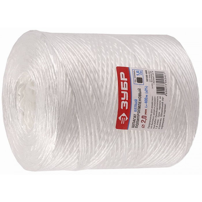 Шпагат полипропиленовый d 2.0 мм, 400 м, 1600 текс, 22 кгс, белый ЗУБР 50100-400