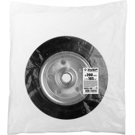 Колесо d 200 мм, г/п 185 кг, игольчатый подшипник, резина/металл ЗУБР Профессионал 30936-200