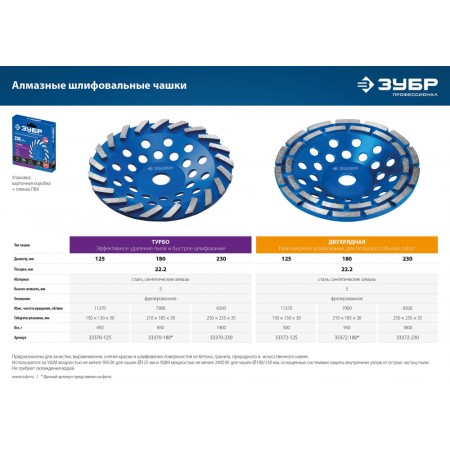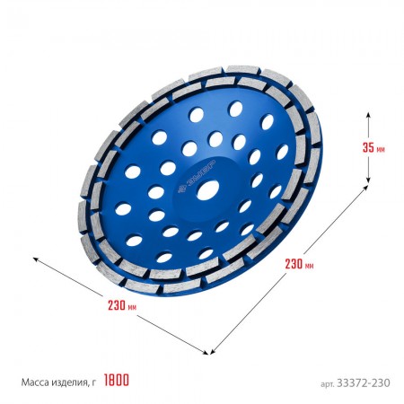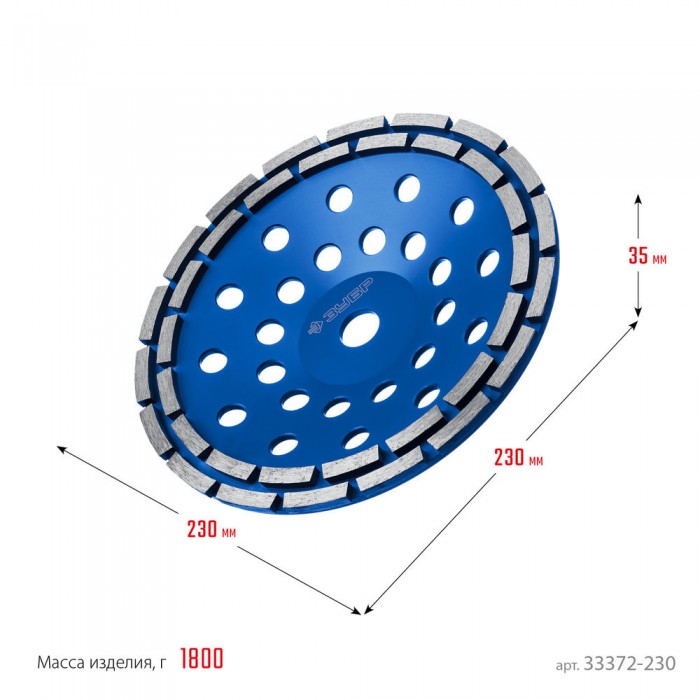 Чашка шлифовальная алмазная двухрядная d 230 мм ЗУБР Профессионал 33372-230_z01