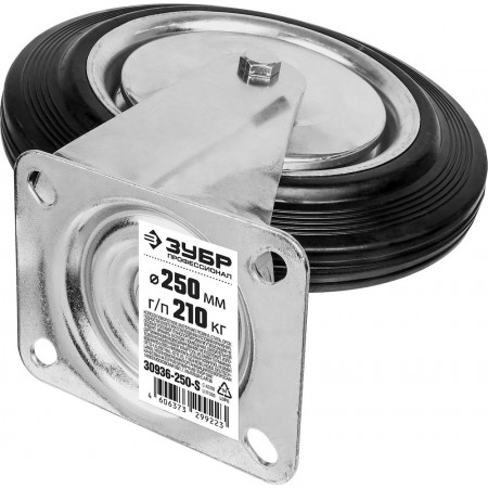 Колесо поворотное d 250 мм, г/п 210 кг, игольчатый подшипник, резина/металл ЗУБР Профессионал 30936-250-S