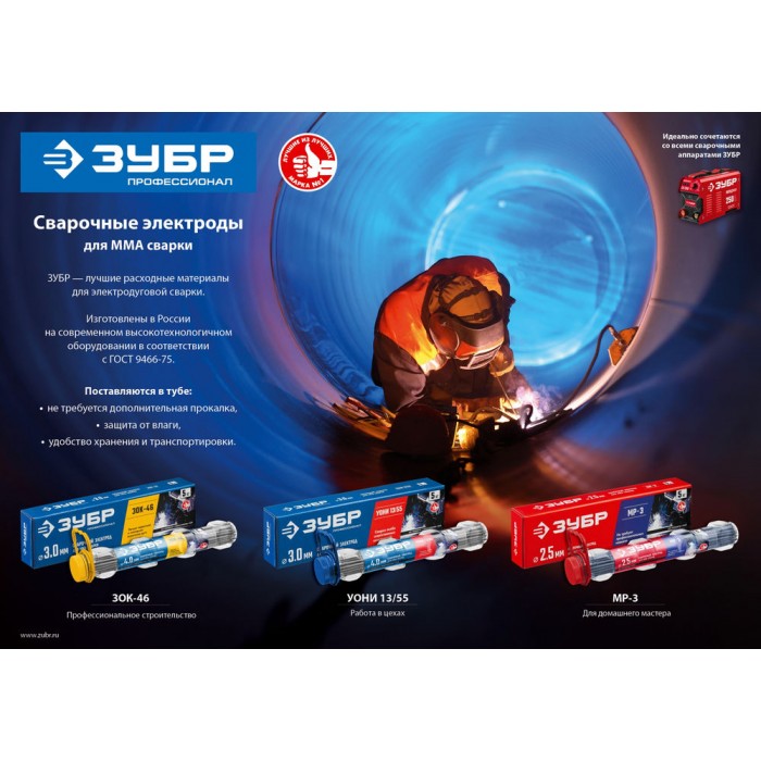 Для сварки углеродистых низколегированных сталей на ММА сварочных инверторах переменным или постоянным током любой полярности. Рекомендуется прокалка перед использованием: +120-160С на 1 час.