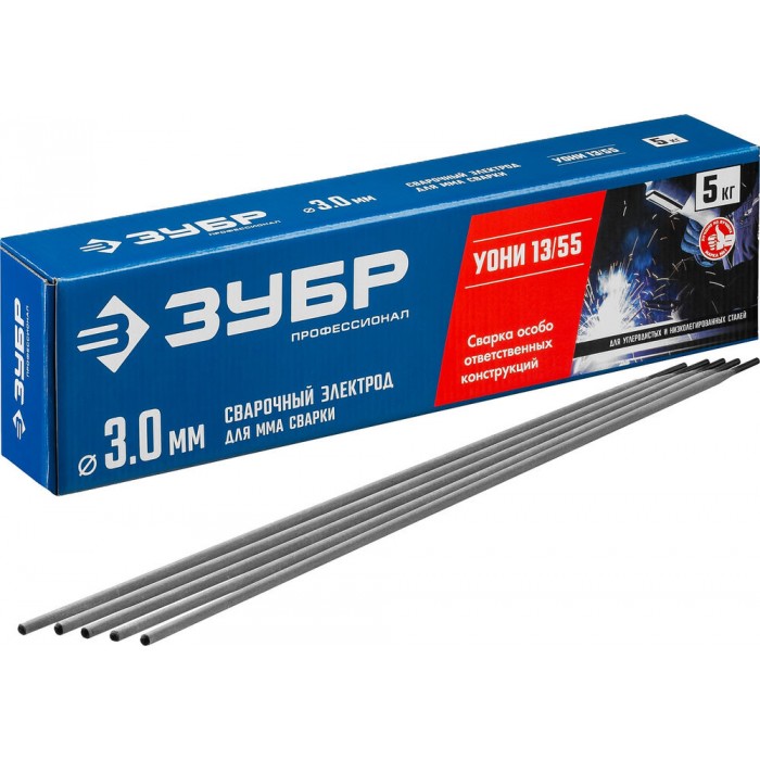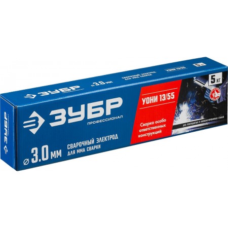 Электрод сварочный УОНИ 13/55 с основным покрытием D 3.0 x 350 мм, 5 кг в коробке ЗУБР Профессионал 40025-3.0