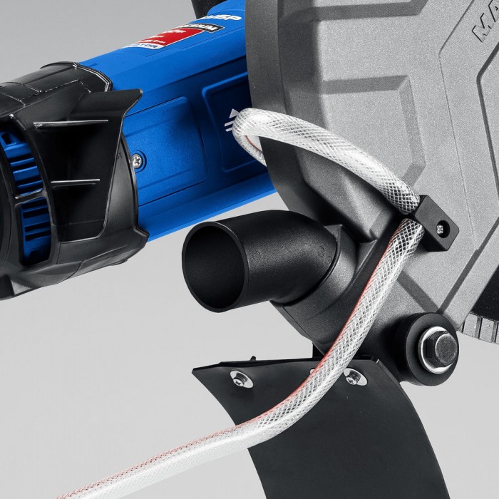 - Возможность работы с подачей воды к месту реза улучшает режим работы диска и уменьшает образование пыли