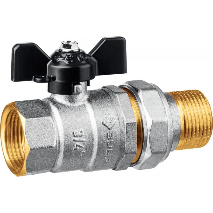 Шаровой кран полнопроходной d 3/4", ручка «бабочка», «мама-папа», с накидной гайкой ЗУБР 51321-3/4