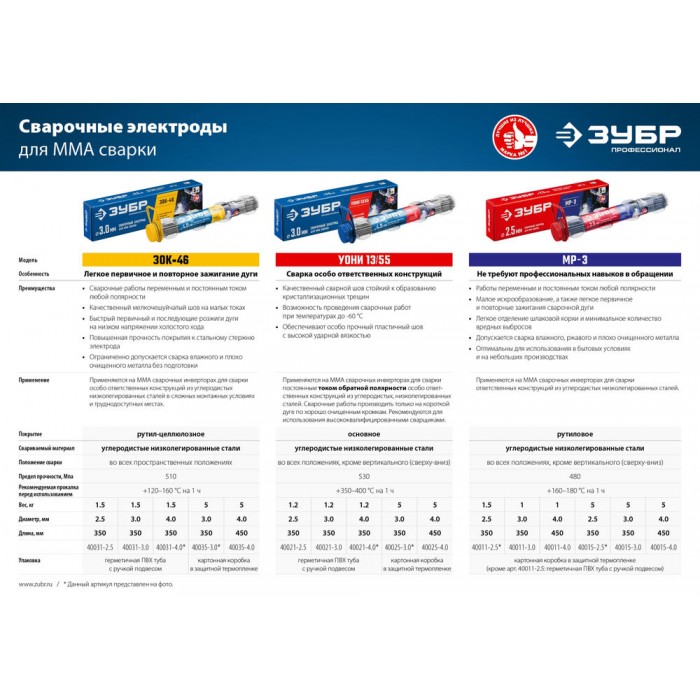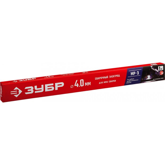 Электрод сварочный МР-3 рутиловый D 4.0 x 450 мм, 1 кг в коробке ЗУБР 40011-4.0