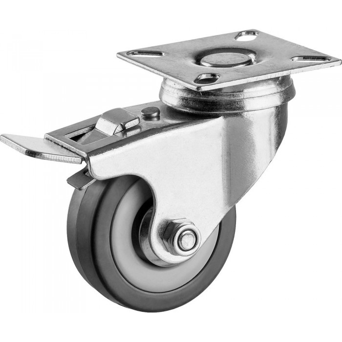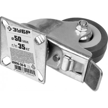 Колесо поворотное с тормозом d 50 мм, г/п 35 кг, резина/полипропилен ЗУБР 30956-50-B