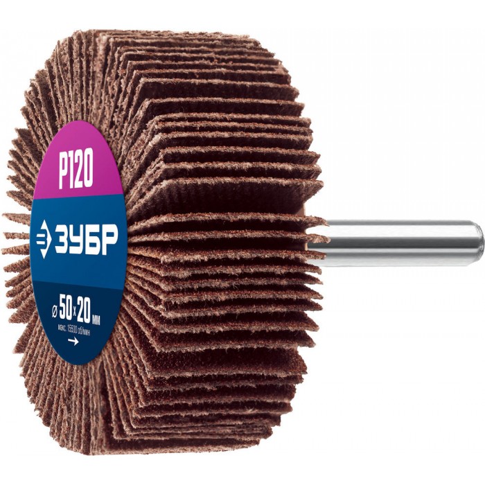 Круг шлифовальный лепестковый d 50 x 20 мм, P120, на шпильке d 6 мм ЗУБР Профессионал 36601-120_z01